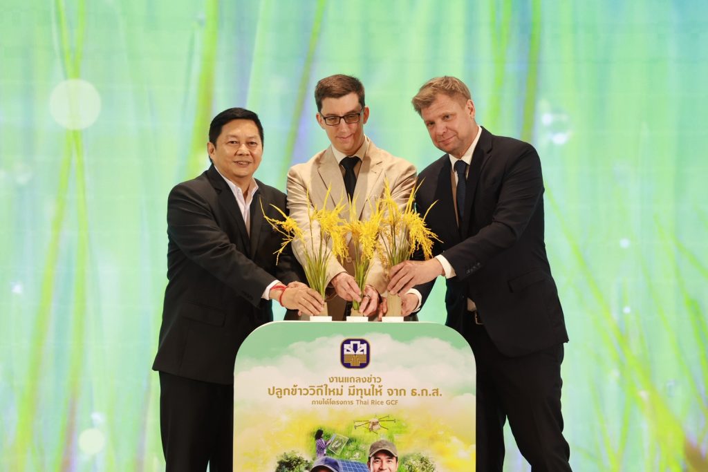 ธ.ก.ส. ร่วม GIZ เปิดตัวรูปแบบเงินอุดหนุนและสินเชื่อดอกเบี้ยต่ำ ภายใต้โครงการ Thai Rice GCF วงเงินกว่า 5,300 ล้านบาท สนับสนุนเกษตรกรผู้ปลูกข้าวไทย 40,000 ราย เพื่อปรับเปลี่ยนวิถีการปลูกข้าวที่เท่าทันต่อสภาพภูมิอากาศ ลดปัญหาโลกร้อน