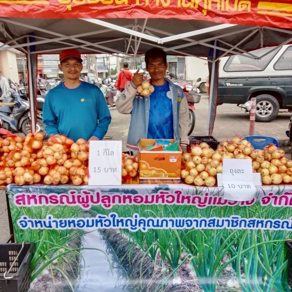 ขณะที่ นางยุพิน อินทะญาติ ผู้อำนวยการกลุ่มส่งเสริมและพัฒนาธุรกิจสหกรณ์ สำนักงานสหกรณ์จังหวัดเชียงใหม่ กล่าวถึงการช่วยเหลือเกษตรกรสมาชิกสหกรณ์ผู้ปลูกหอมหัวใหญ่ของภาครัฐในช่วงที่ผ่านมา นอกจากกรมการค้าภายใน กระทรวงพาณิชย์ นำผู้ประกอบการกว่า 30 รายเข้ามารับซื้อผลผลิตในพื้นที่              ในราคานำตลาดที่ 6 บาท/กิโลกรัม ในช่วงวันที่ 21 – 28 กุมภาพันธ์ 2569 ที่ผ่านมาแล้ว ทางสำนักงานสหกรณ์จังหวัดเชียงใหม่ร่วมกับจังหวัดเชียงใหม่จัดพื้นที่จำหน่ายให้กับสหกรณ์ฯบ้านกาดพัฒนา จำกัด และสหกรณ์ฯแม่วาง จำกัด นำผลผลิตหอมหัวใหญ่ของสมาชิกมาจำหน่ายบริเวณศาลากลางจังหวัด                โดยสลับกันมาสัปดาห์ละ 2 วันทุกวันอังคารและวันศุกร์ เพื่อช่วยระบายผลผลิตจากแหล่งผลิตสู่ผู้บริโภค             ได้บางส่วน